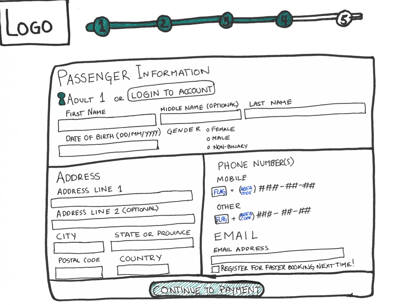 * Simplified billing process: Passenger information and payment details are displayed on a single page for ease of review and payment.